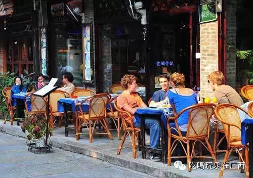 阳朔人爱吃的糍粑与米粉、正宗的意大利咖啡与西餐、古老的中国画、最前卫的休闲风尚、国语、英文、法语、意大利语乃至西班牙语……种种看似不可能的,全部柔合在长度不足1000米的岭南小街里。