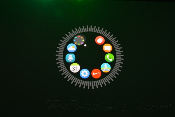 不同于Galaxy Gear系列向来的设计,三星这次Gear S2采用的是圆形表盘,应用图标设计类似Apple Watch。