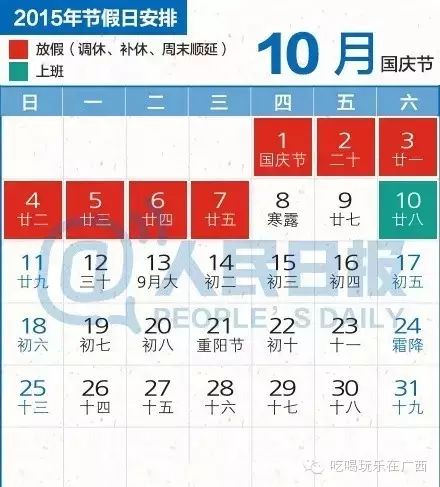 ——国庆节:10月1日至7日放假调休,共7天。10月10日(星期六)上班。