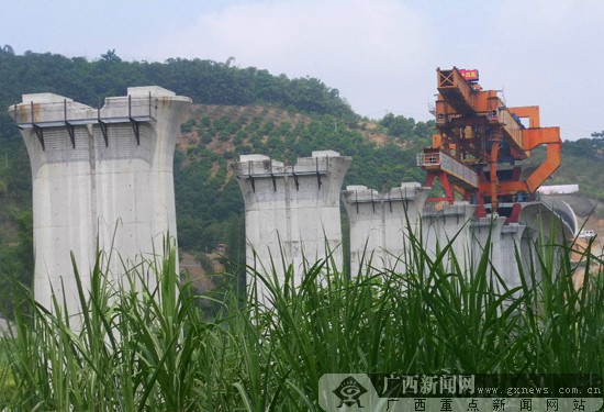 平果境内架梁作业的现场。(资料图) 广西新闻网 通讯员 莫小斌 摄