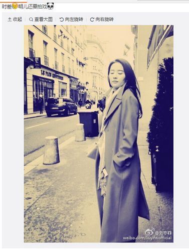 今日凌晨,刘亦菲通过微博晒出一张文艺范儿美照,并留言称,“时差,明儿还要拍戏”。