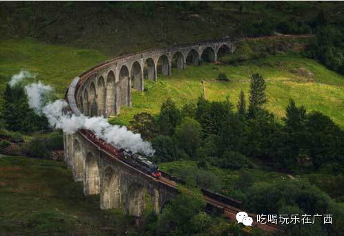 《哈利波特—消失的密室》电影中,蒸汽火车行驶其上的格林芬南高架桥(Glenfinnan Viaduct)