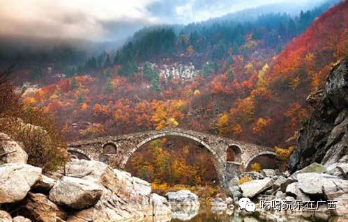 位于保加利亚罗多彼山脉,中古世纪欧洲人认为建造困难,“必定有魔鬼帮助”的魔鬼桥(Devil's Bridge)