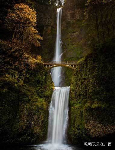 美国俄勒冈州摩特诺玛瀑布(Multnomah Falls) 站在桥上欣赏这等瀑布美景,不得不佩服大自然的力量。