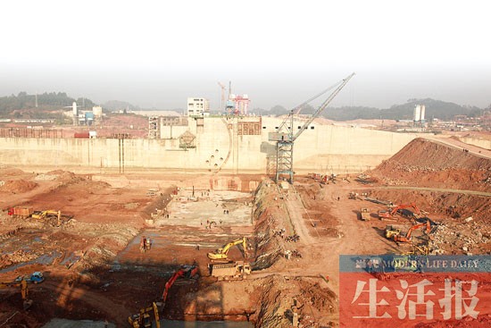 近日,记者在老口航运枢纽工程项目现场了解到,该工程已于去年年底完成截流,船闸也已经建成。远远望去,整个工程大坝雄伟而壮观。为完成余下工程,施工现场挖掘机的轰鸣声,伴随着来来往往的运沙车,整个工地呈现出一派繁忙、热闹的景象。