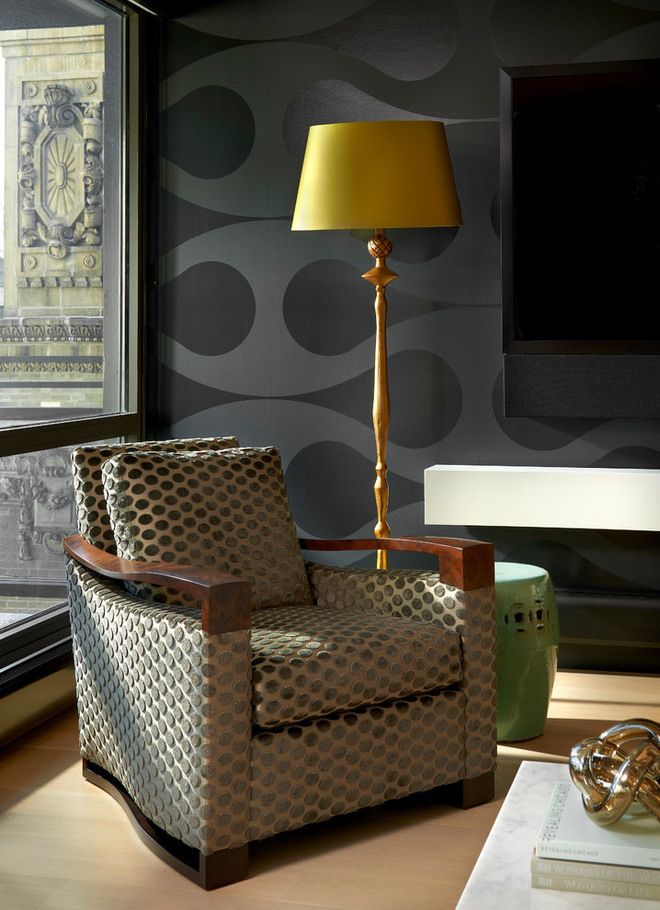 本案的设计风格为混搭现代,业主是一对年轻的新婚夫妇。希望能用简单的装饰营造出奢华质感。因此在设计时,我考虑带一些大胆的颜色,木色吧台的沙发背景墙,为居室增添了不少浪漫的感觉,似卡布奇诺一般也透着香气。