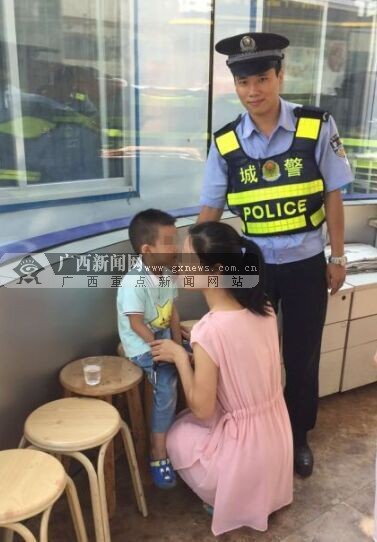 民警帮助走失小孩找到妈妈。 广西新闻网 通讯员龚婧 韦苡鑫供图