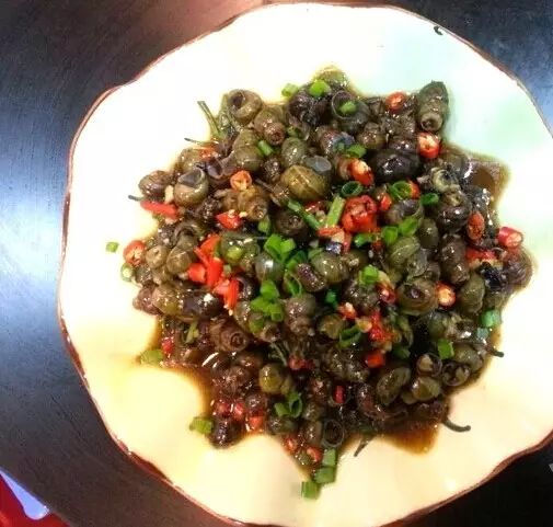 紫苏炒螺以香辣鲜甜著称。螺蛳选择石螺。油爆香辣椒、蒜蓉后,放入螺蛳继续翻炒,再入紫苏叶、米醋、胡椒粉等,去除螺的泥腥味。最后稍稍勾芡出锅。