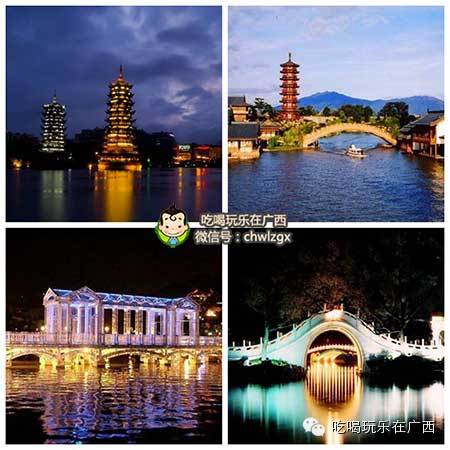 景点: 杉湖景区、桂湖景区、木龙湖景区、知音台、补杉亭、日月双塔、邀约台、日月湾、阳桥、北斗七星桥、桂林榕湖榕溪桥、湖心岛等。