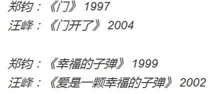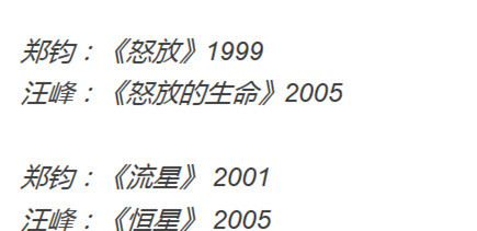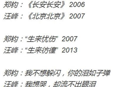 首先懂小姐发现,热心网友的神总结,还真的让汪峰和郑钧成了一对歌名上的twins。