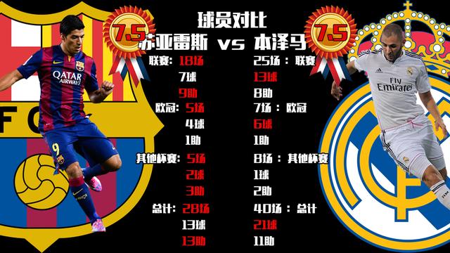 苏亚雷斯 VS 本泽马7.5分:7.5分