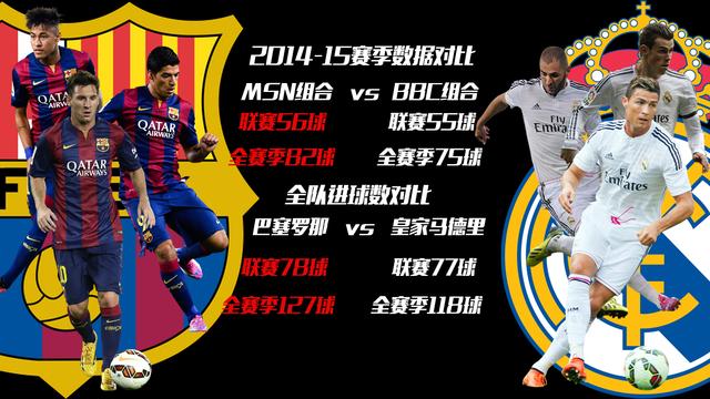 赛季至今,巴萨三叉戟出战103场(注:为3人数据叠加之和)攻入82球,而皇马BBC组合则出战114场入75球。其中西甲联赛巴萨锋线包办56球,皇马三前锋包办55球。因苏亚雷斯赛季初停赛两月,MSN组合在出场次数更少的情况下,进球数已全面反超BBC,可见南美三杰近期状态有多出色。