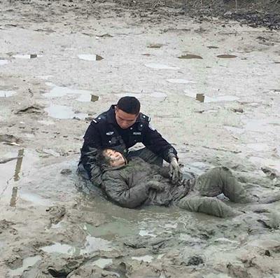 老人大年初一掉藕塘冻僵 民警蹲泥中当"靠枕"施救