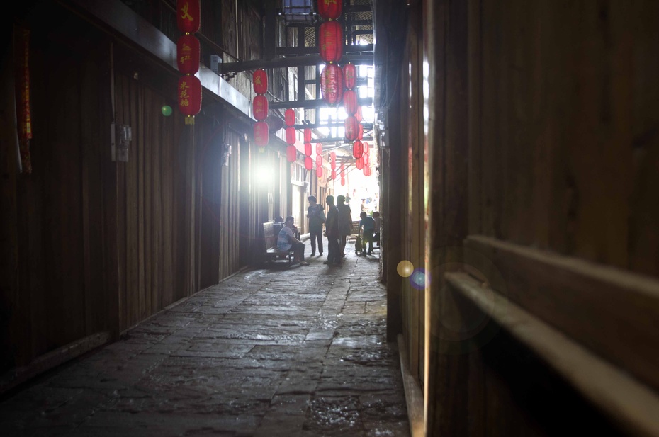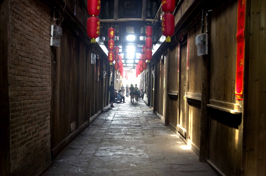 这种独特的内场式建筑形态,为邻里交往提供了美好和谐的空间。成为两边住家和店铺的公共“客厅”,大人搬出座椅,在窄窄的内街喝茶、聊天、打牌、做家务,小孩子则在内街上嬉戏玩耍,邻里关系十分密切融洽。有意思的是,从2009年开始每年的农历腊月28,这里会举办“千米长街宴”。据说,当地人非常好客,不管你是外来的客人还是本地的人,都可以随便坐下就吃,不用讲客气,也可以一手拿饭碗一手拿筷子从“千米长街宴”的这头吃到那头,他们每家都做上一桌自己的拿手好菜,各家菜品不同,也不会收取分文。